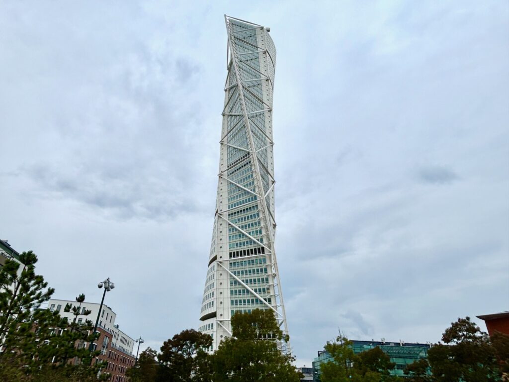 Établi le long du détroit de l’Öresund, à l’emplacement d’une ancienne zone portuaire, l’écoquartier de Västra Hammen fonctionne à 100 % avec les énergies renouvelables. Son architecture privilégie des volumes épurés avec de grandes baies vitrées, des maisons sur l’eau et des pontons pour la baignade. Dans ce quartier futuriste émerge la Turning Torso, un immeuble de grande hauteur torsadé de 190 m de haut conçu par Santiago Calatrava (cf. photo). Comportant 54 étages, il est composé de neuf cubes de 5 étages chacun, qui sont décalés de quelques degrés en s’élevant ; ainsi le segment le plus haut accuse une rotation de 90 degrés par rapport au sol. Les deux cubes les plus bas sont occupés par des bureaux et les sept suivants par des appartements. Ce gratte-ciel est rapidement devenu l’emblème de Malmö.