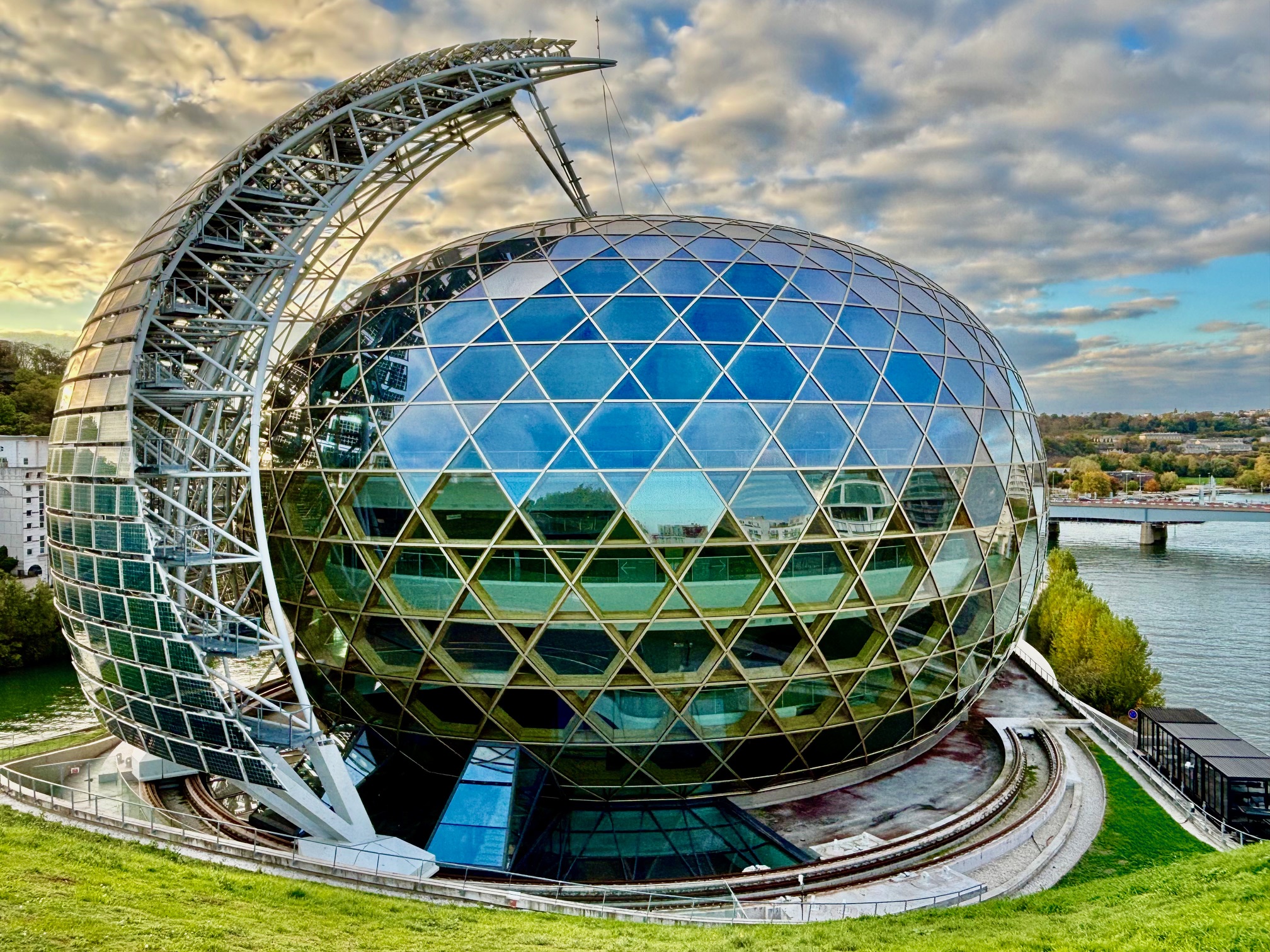 L’AUDITORIUM PATRICK DEVEDJIAN (Boulogne-Billancourt – Hauts-de-Seine) – Octobre 2025. Cette salle, tout habillée de bois clair, dédiée aux concerts de musique classique, jazz et musiques du monde, s’intègre dans le complexe de La Seine musicale. Construit à la pointe aval de l’île Seguin, ce vaste centre des arts de la scène, dessiné par les architectes Shigeru Ban et Jean de Gastines, comprend un ensemble de bâtiments consacrés à la musique : la Grande Seine qui peut accueillir jusqu’à près de 7 000 personnes, un pôle de répétitions et d’enregistrement, des locaux pour des ensembles en résidence, et l’auditorium Patrick Devedjian d’une capacité de 1 150 places. Ce dernier a une forme d’œuf en bois tressé avec une gigantesque voile de panneaux voltaïques qui se déplace suivant la course du soleil et qui permet d’alimenter en électricité l’auditorium. Modulable, sa disposition à 360° en gradins et balcons tout autour de la scène permet d’être proche des artistes pour le plaisir des yeux et des oreilles.